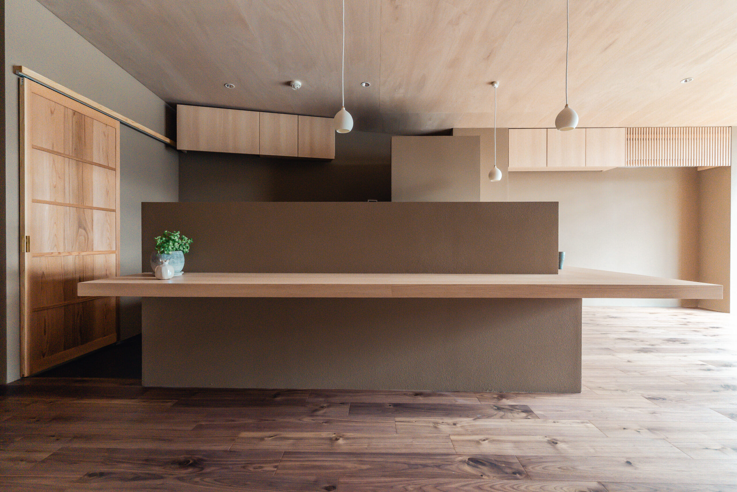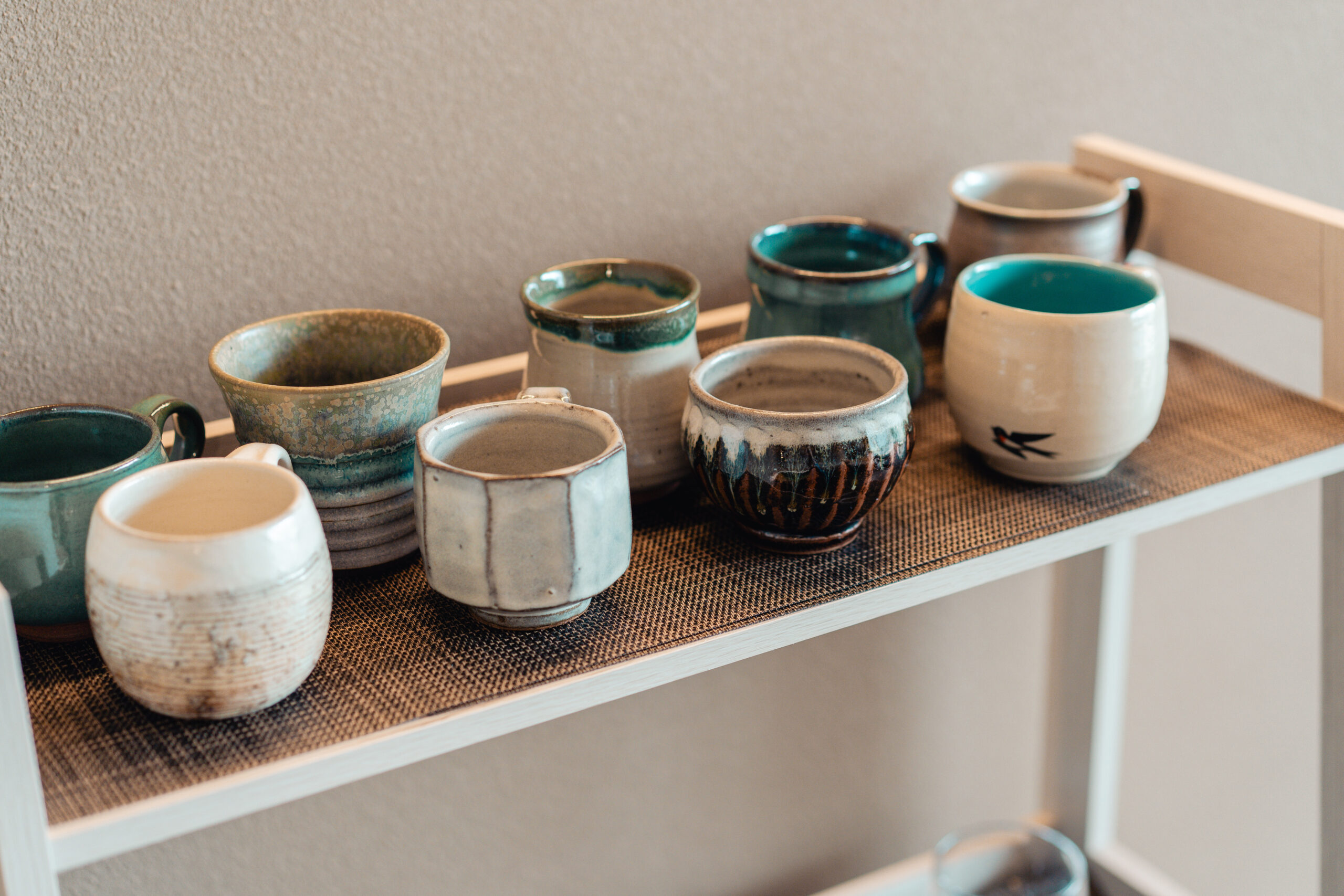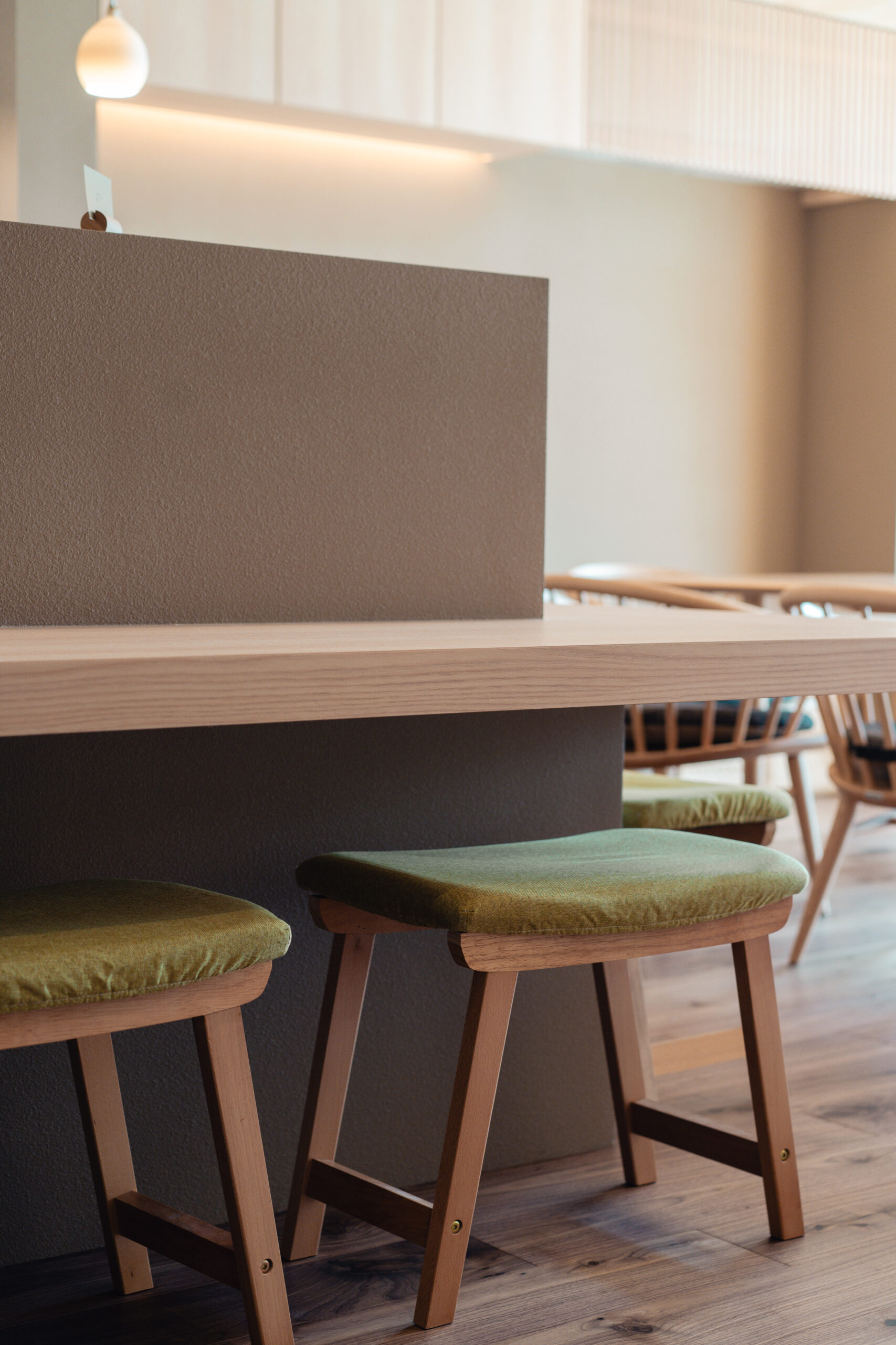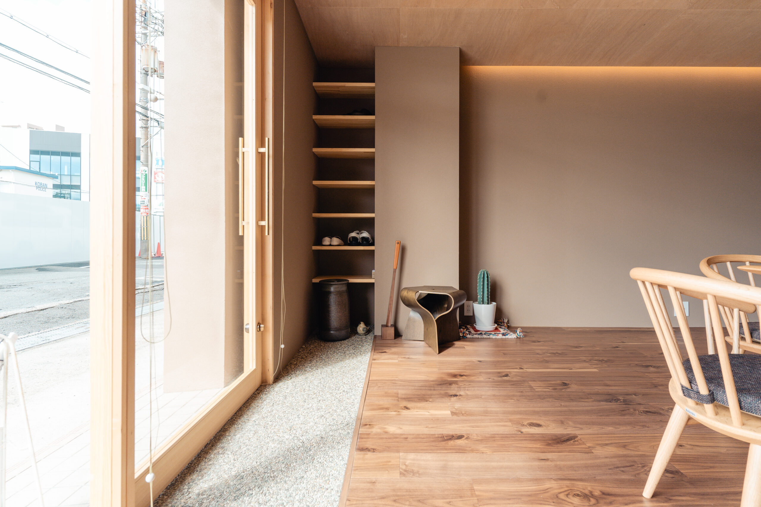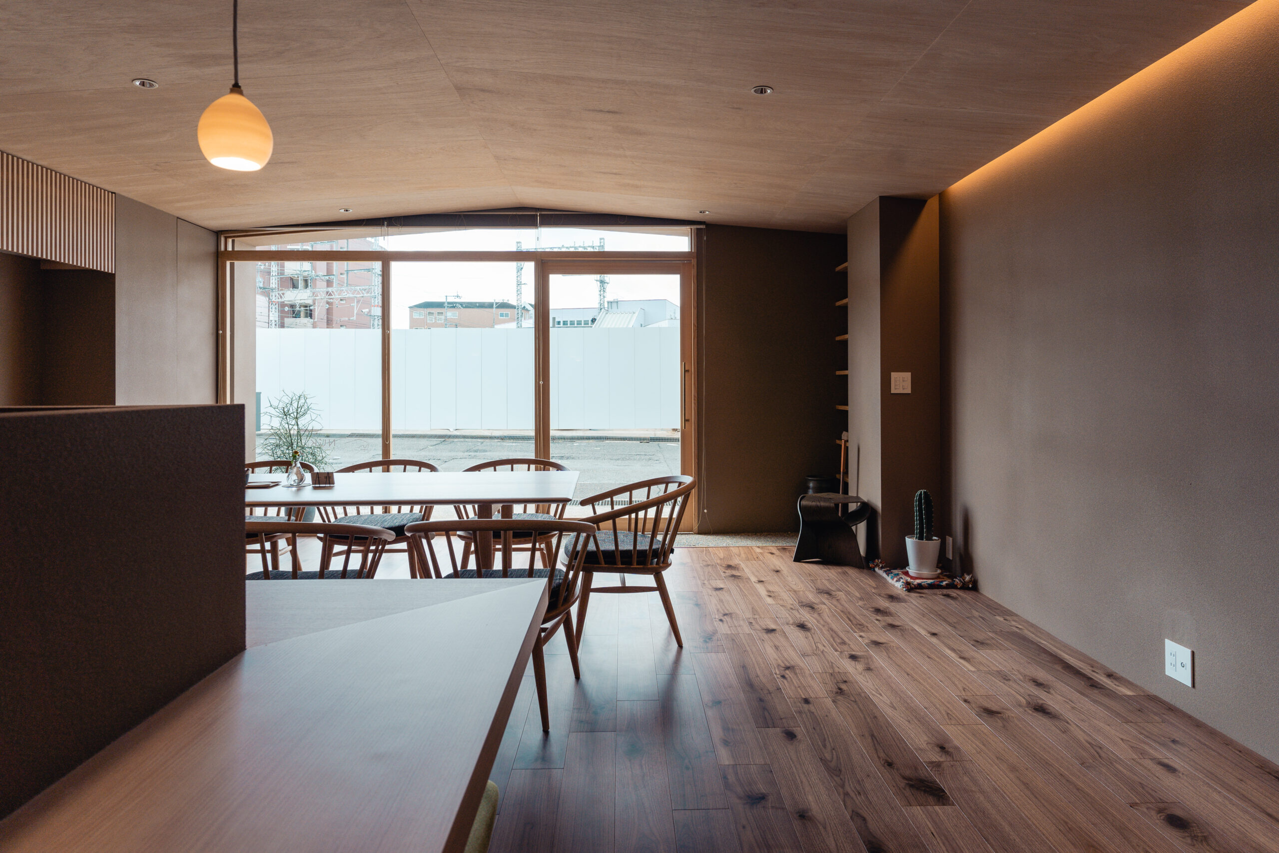 NUKは、ヨガ教室、料理教室、カフェなど多様な用途に対応できる柔軟なスペース、間接照明を中心に柔らかな光で空間を包み込みます。ペンダント照明には手作りの温もりを感じさせる卯山窯の陶器を採用し、空間に個性を加えています。