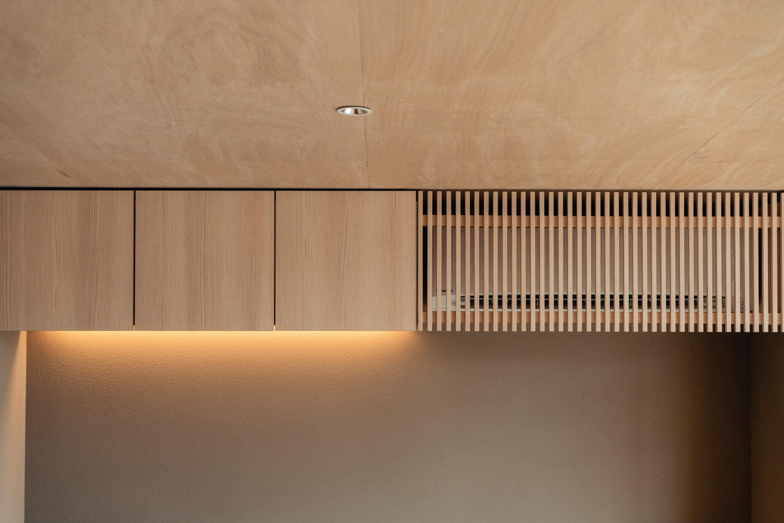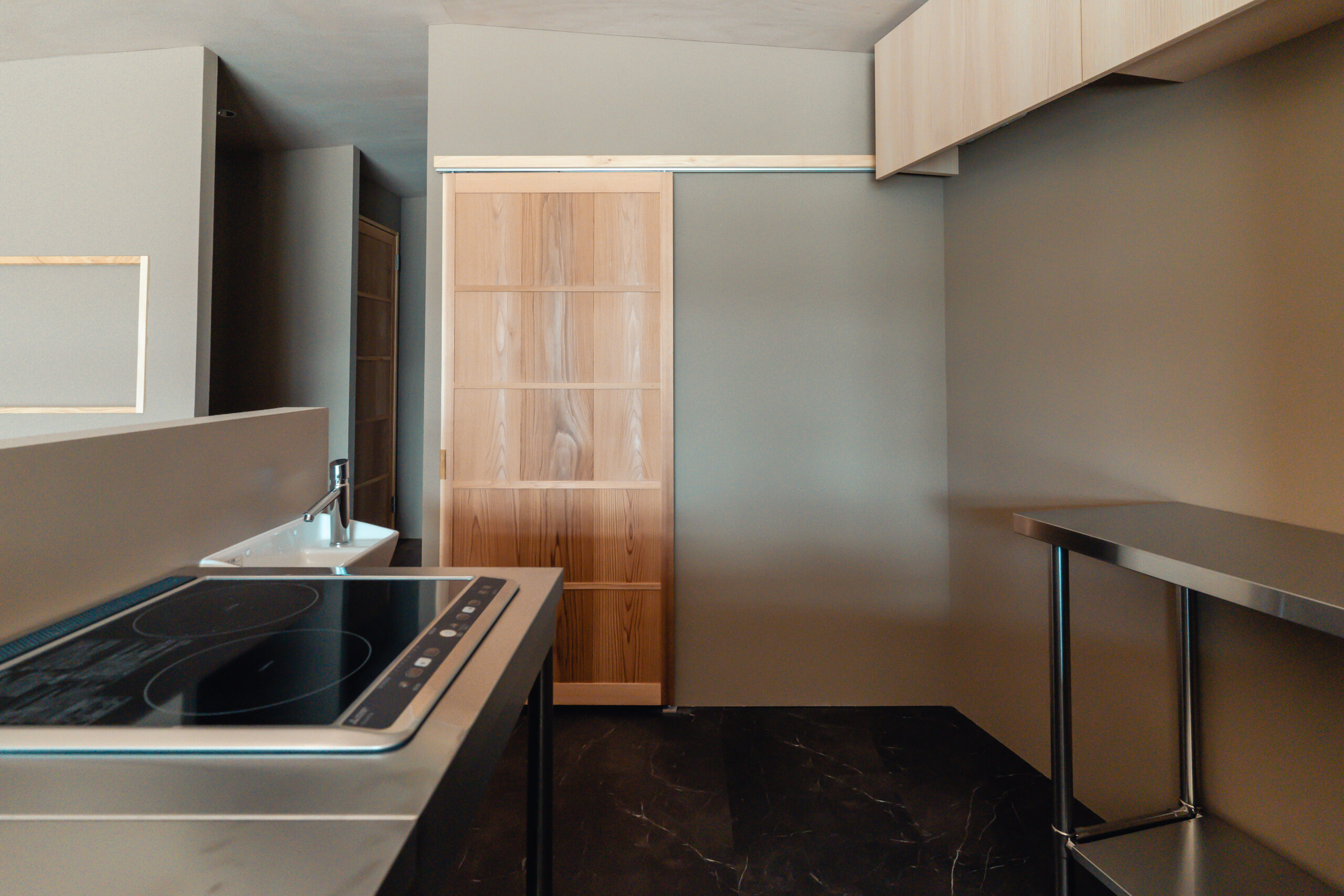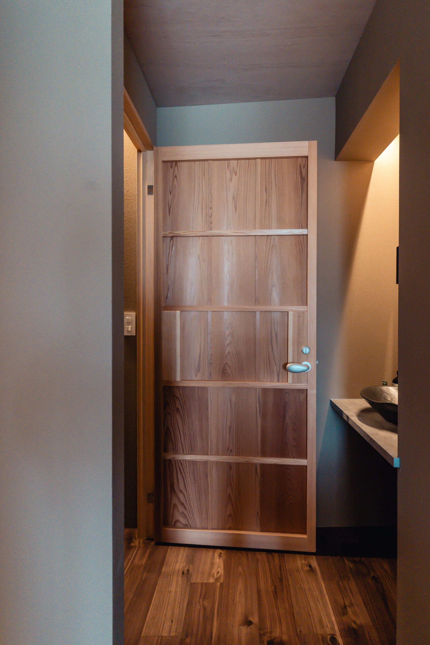 また、杉の建具がアクセントとなり、温かみや懐かしさを感じさせる要素として空間にアクセントを加えています。