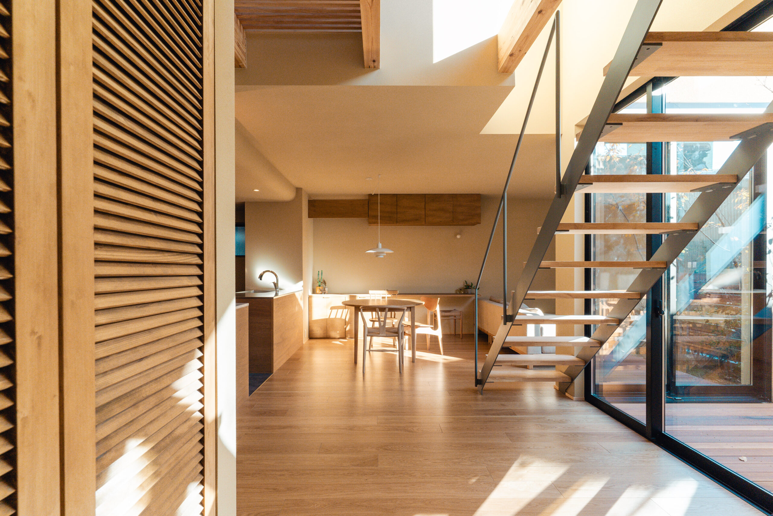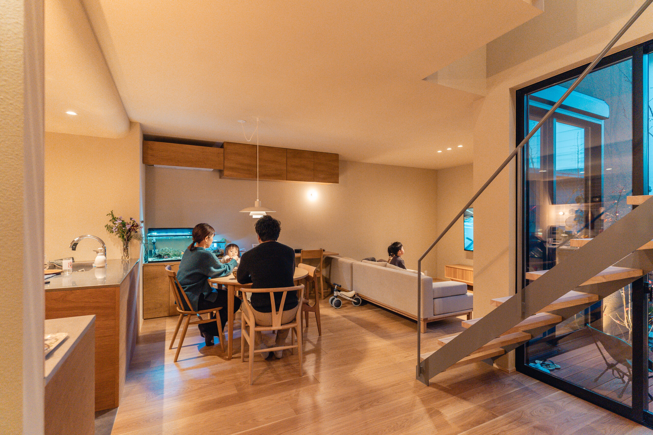 外を感じるこの家で暮らす人がそれぞれの居心地の良い場所を見つけ、季節や天候によって着る服が変わるように暮らし方も変化していけばいいなと思う。