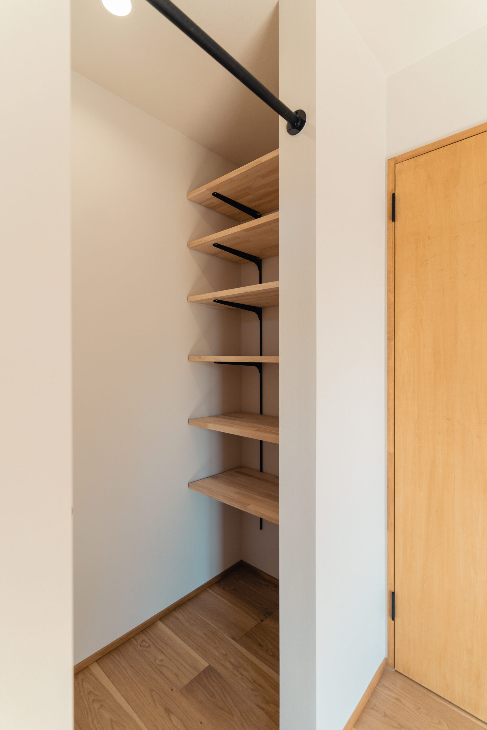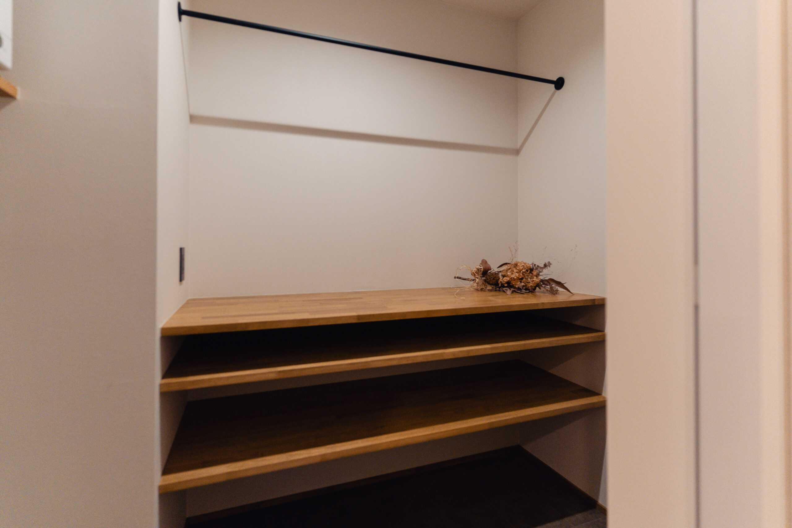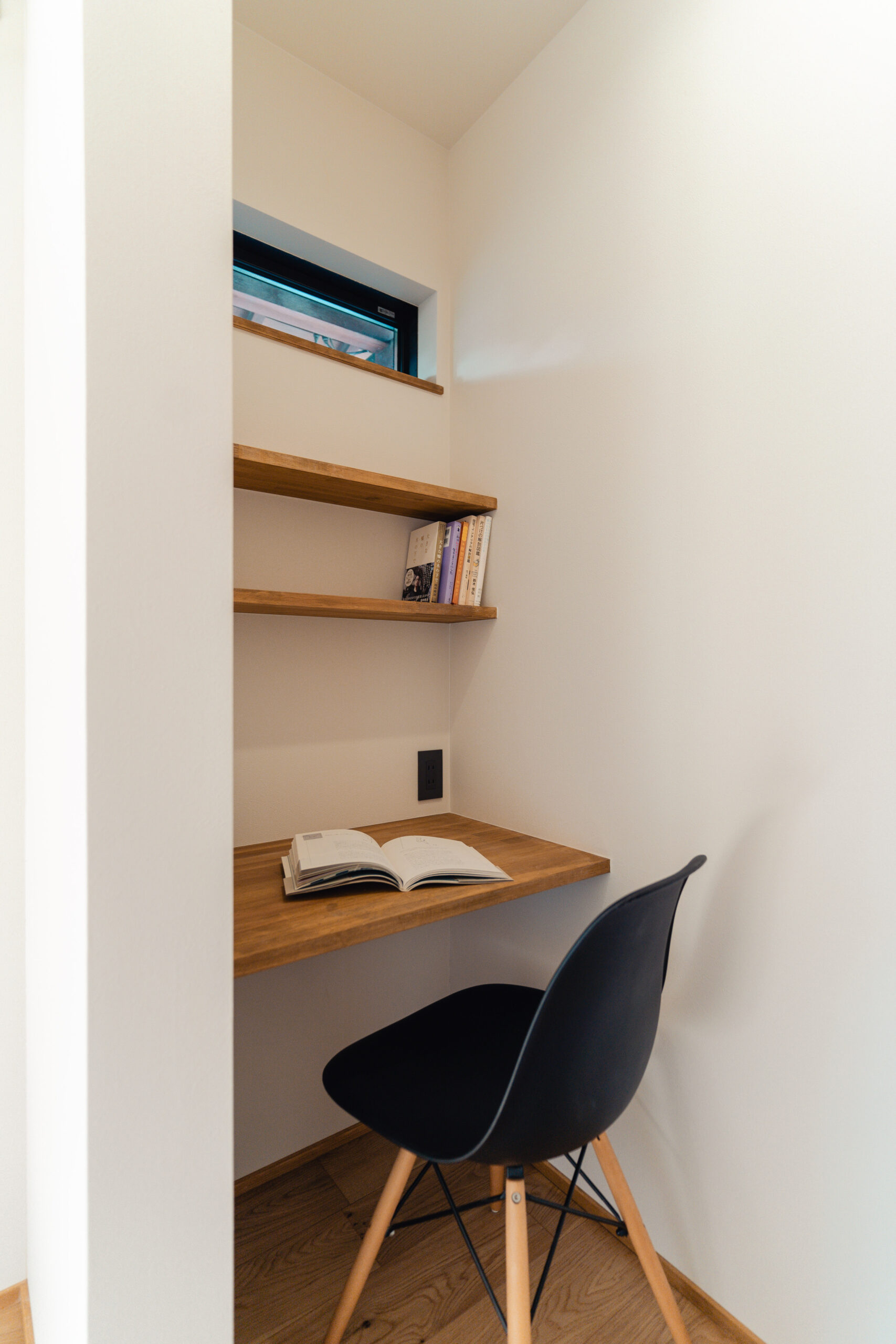 家族のライフスタイルを考慮し、収納機能を兼ね備えた造作のワークスペースを設置。リモートワークや家事の合間にも使える便利なスペースとなり、生活の中で必要な物を整理整頓しやすくしています。