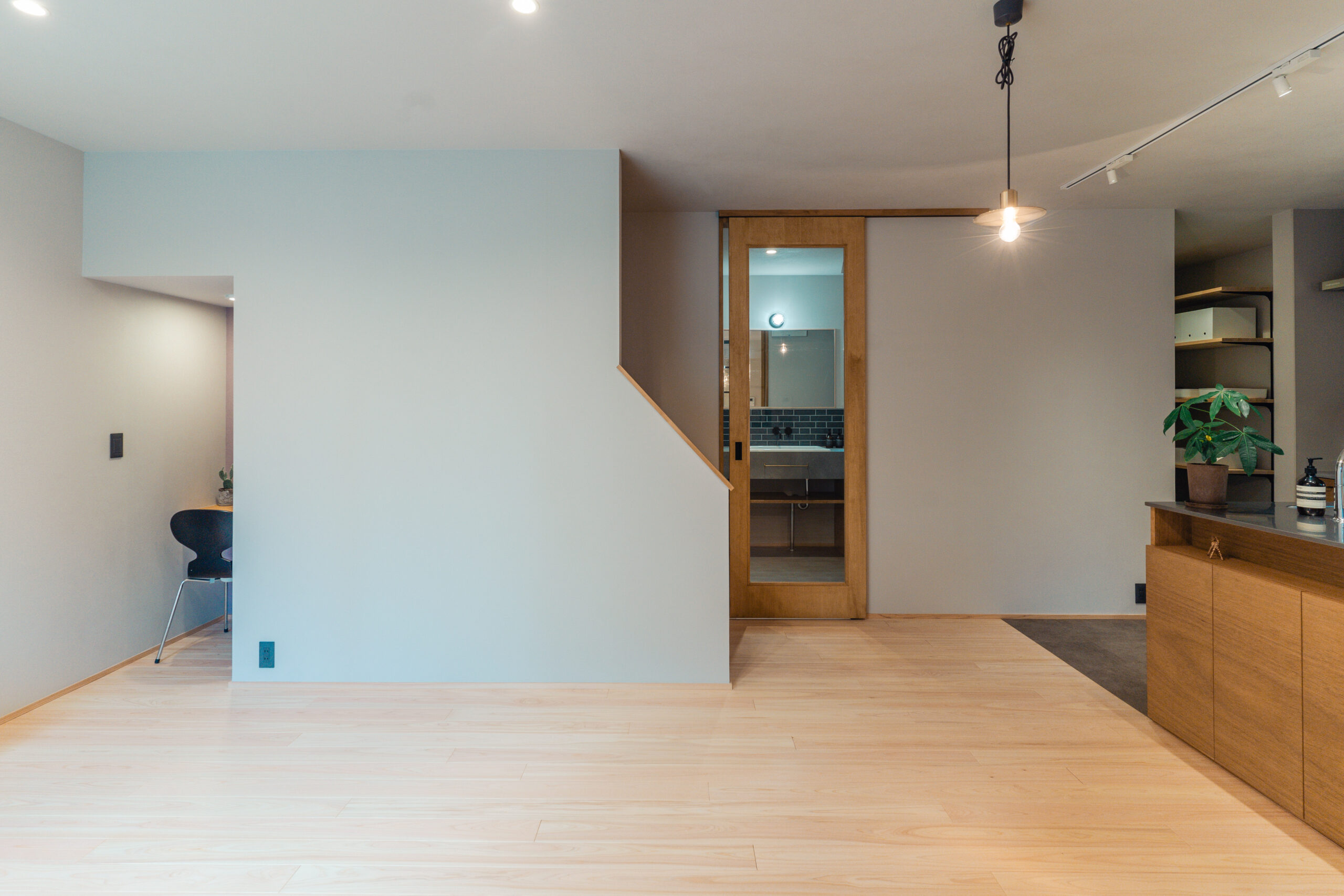 閑静な住宅街に位置する戸建物件の1階部分を中心にリノベーションした事例です。