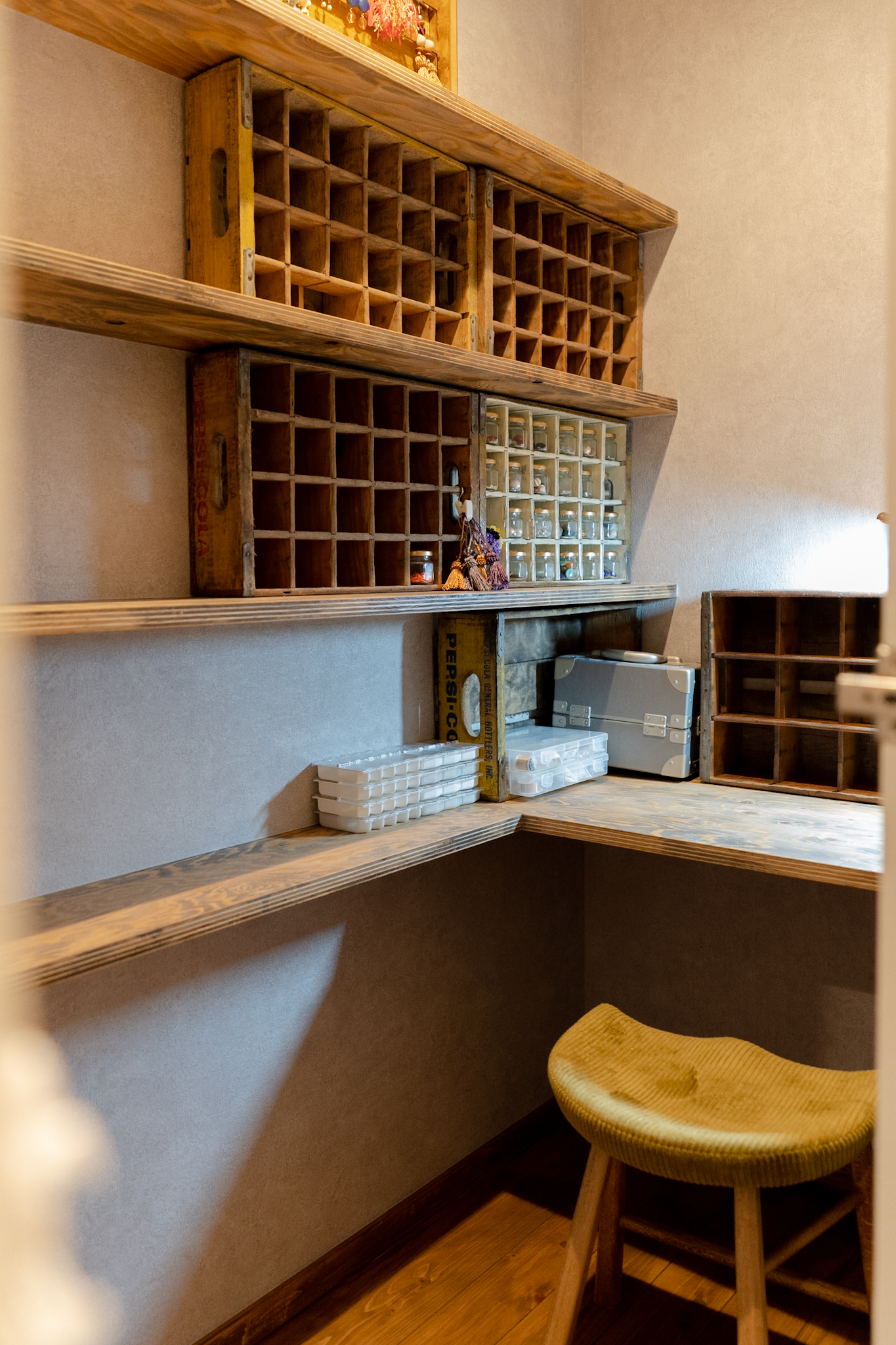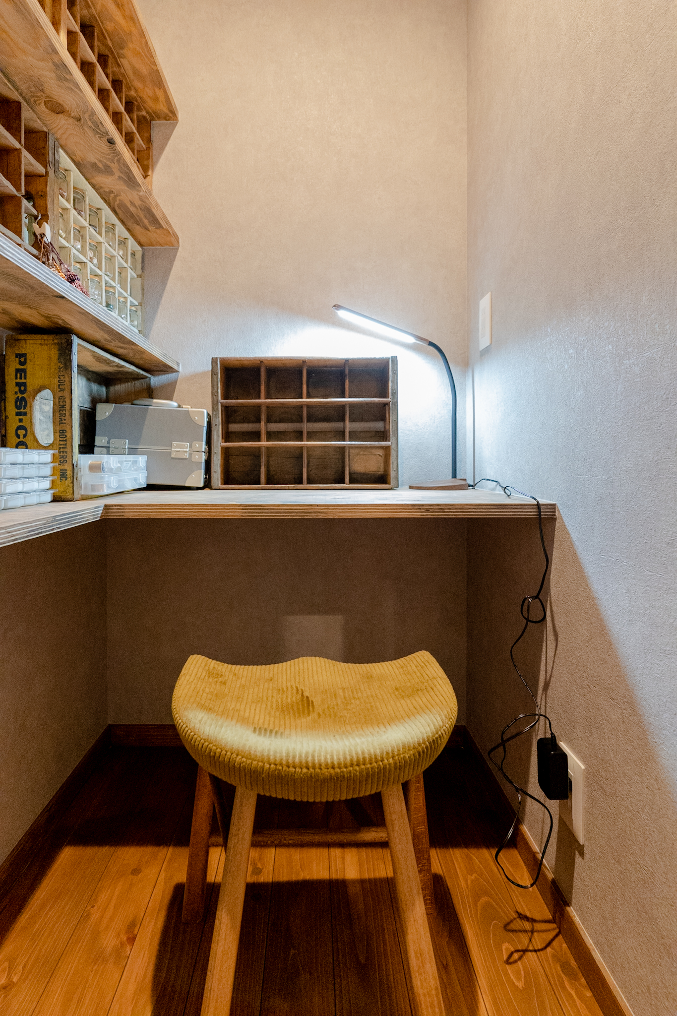 さらに、ワクワクポイントとなる隠し部屋をつくりました。廊下の全身鏡が入口になっており、アクセサリー作りが趣味の奥様の作業部屋。