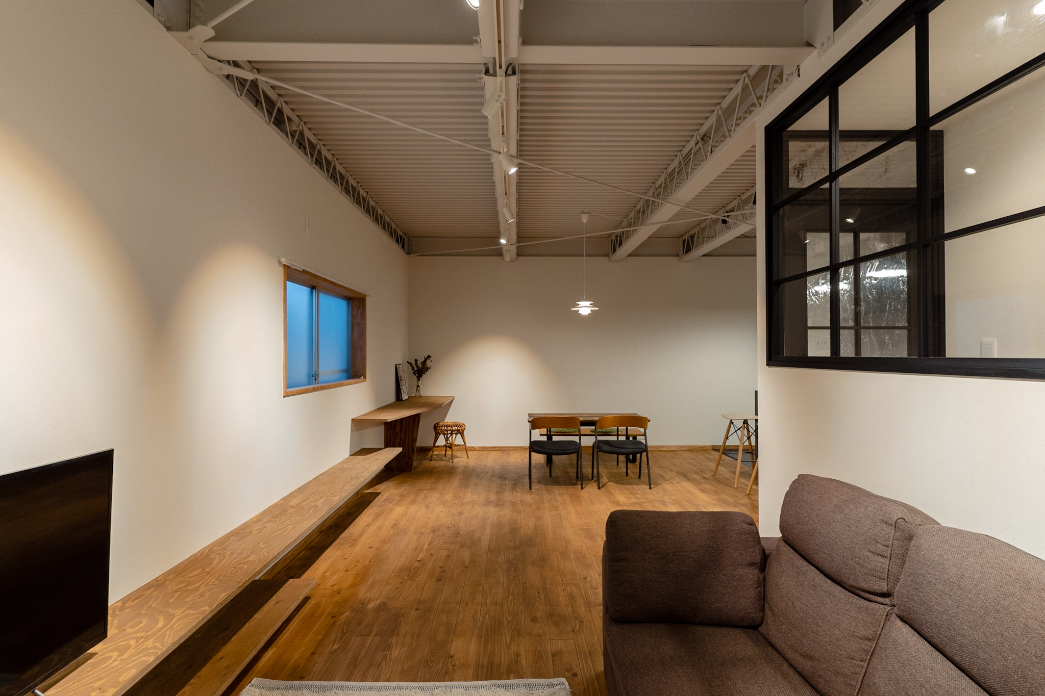 古い鉄骨の建物をフルリノベーション。むき出しの鉄骨構造を生かした無機質でカッコイイLDK。