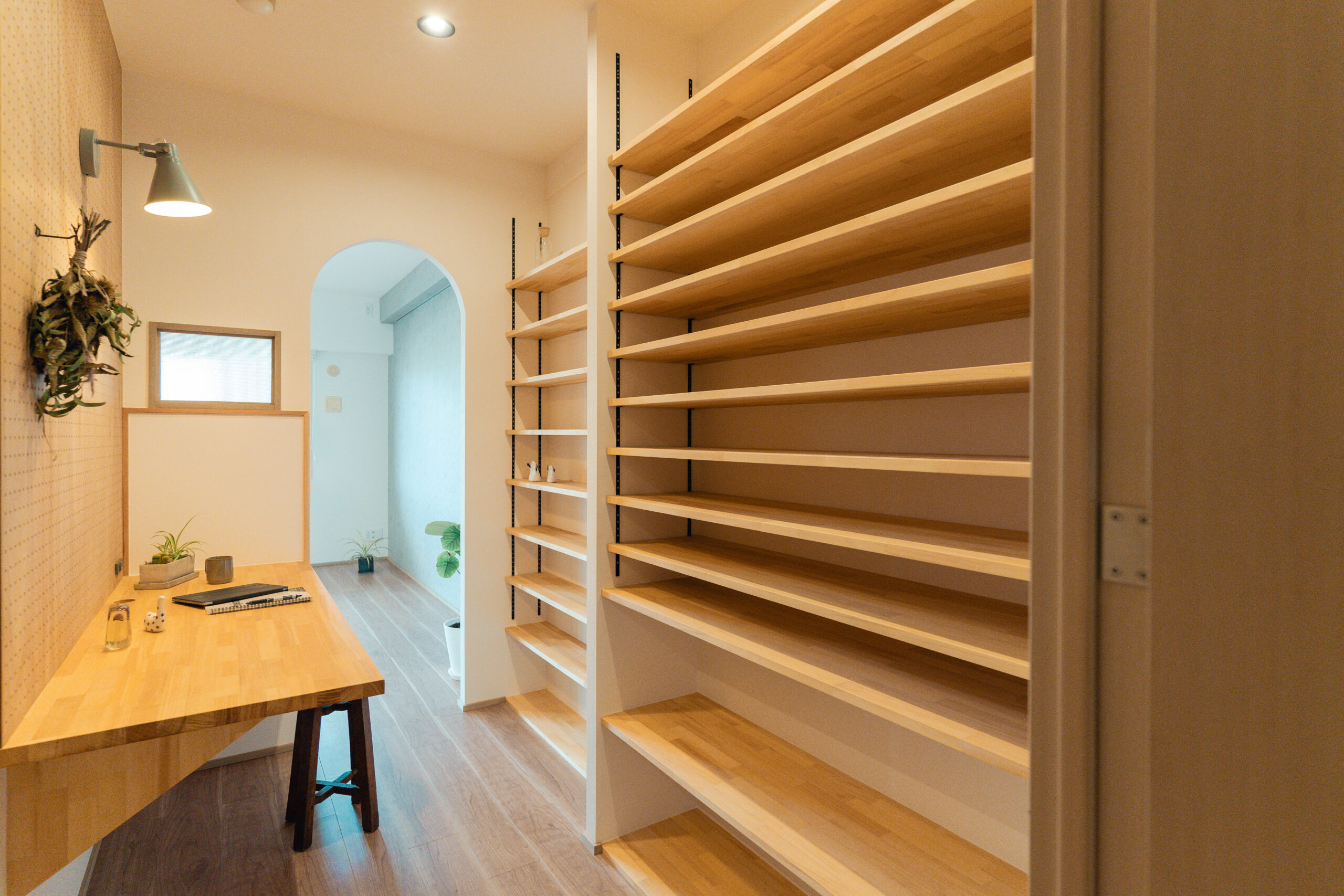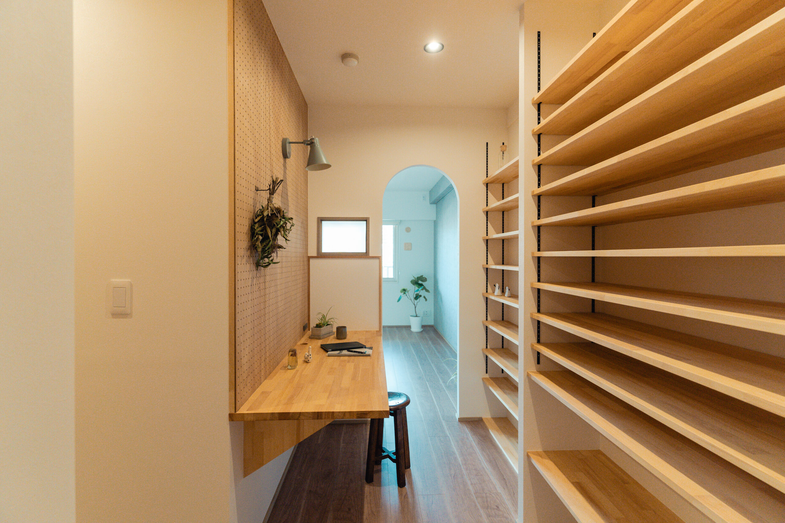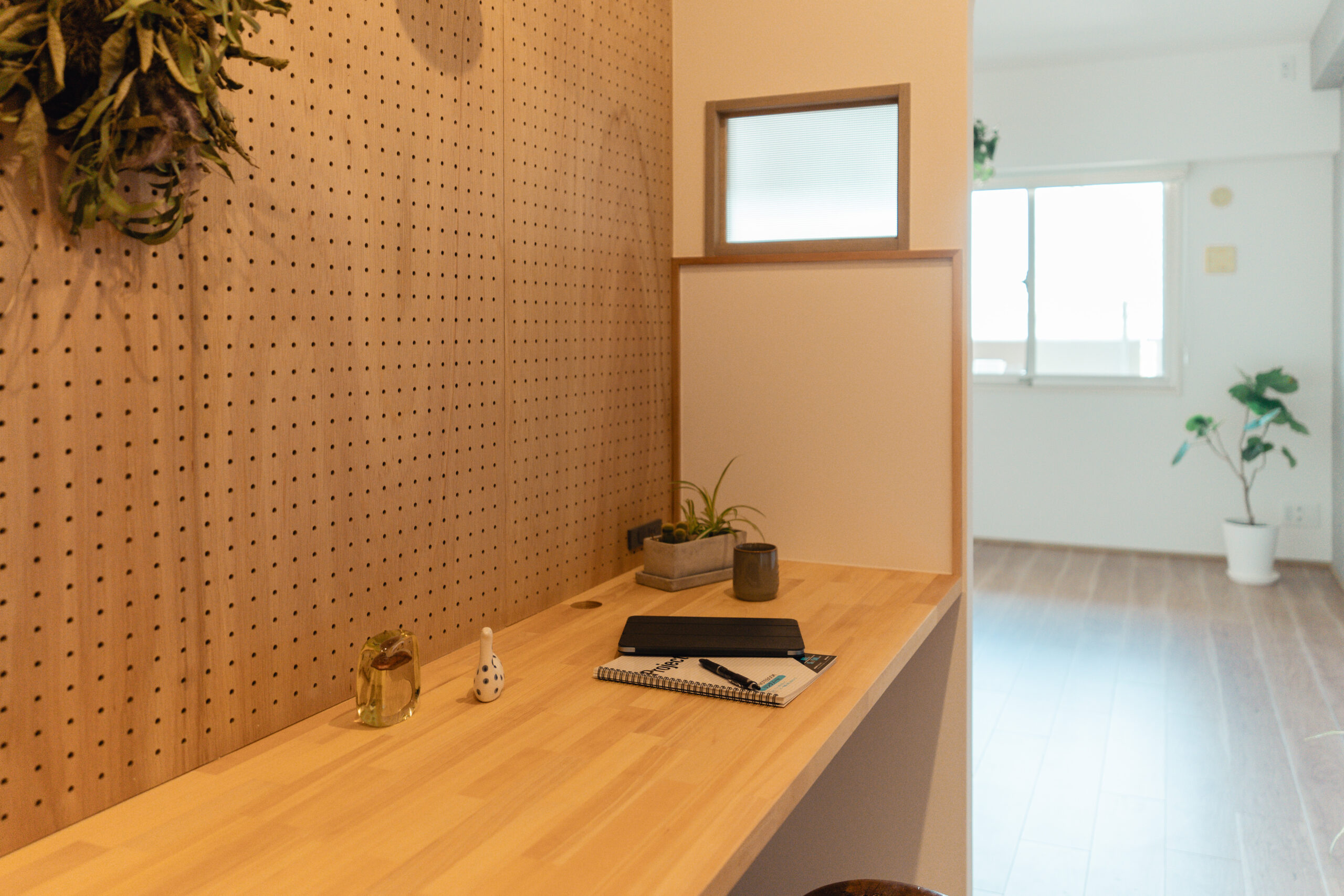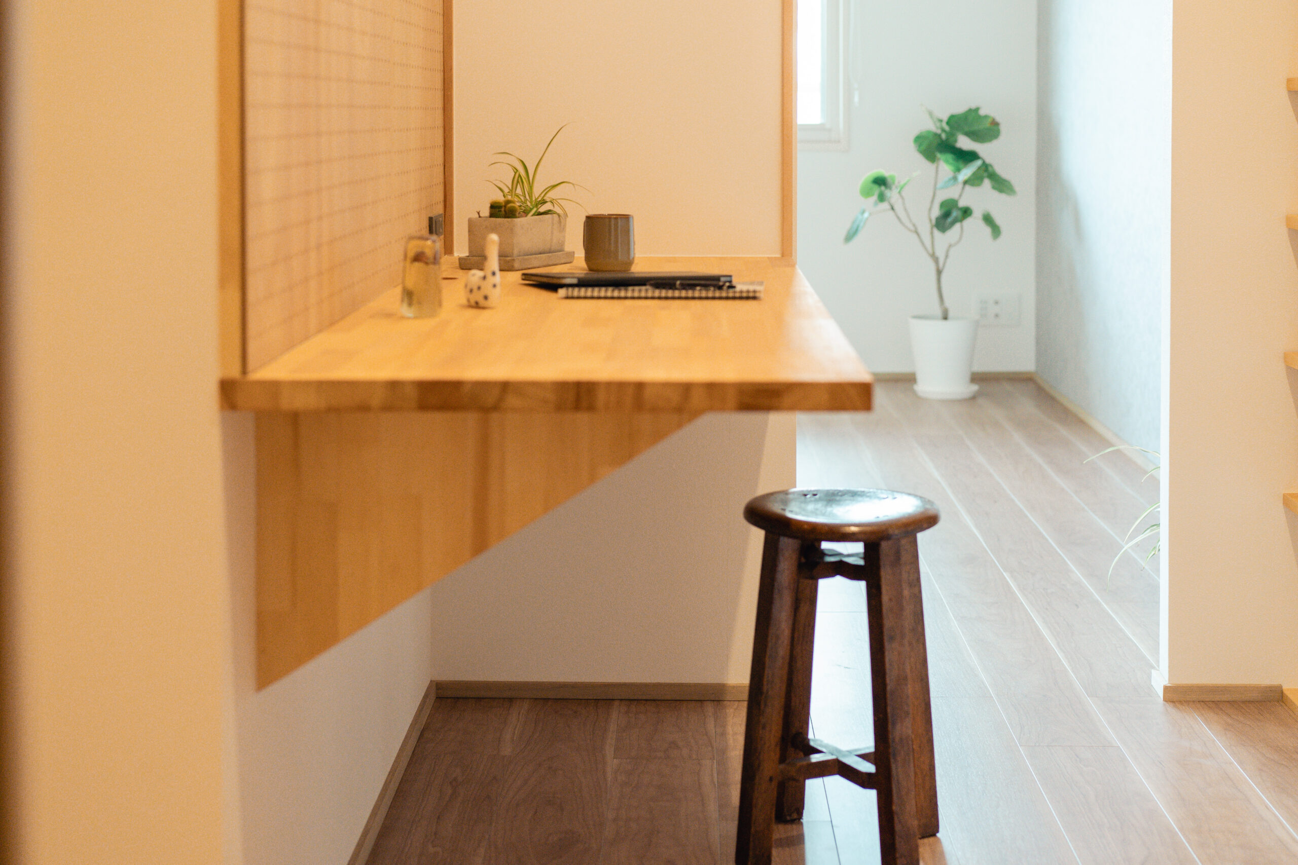ワークスペースは自然光も感じられるようリビングと繋がる空間に仕上げました。