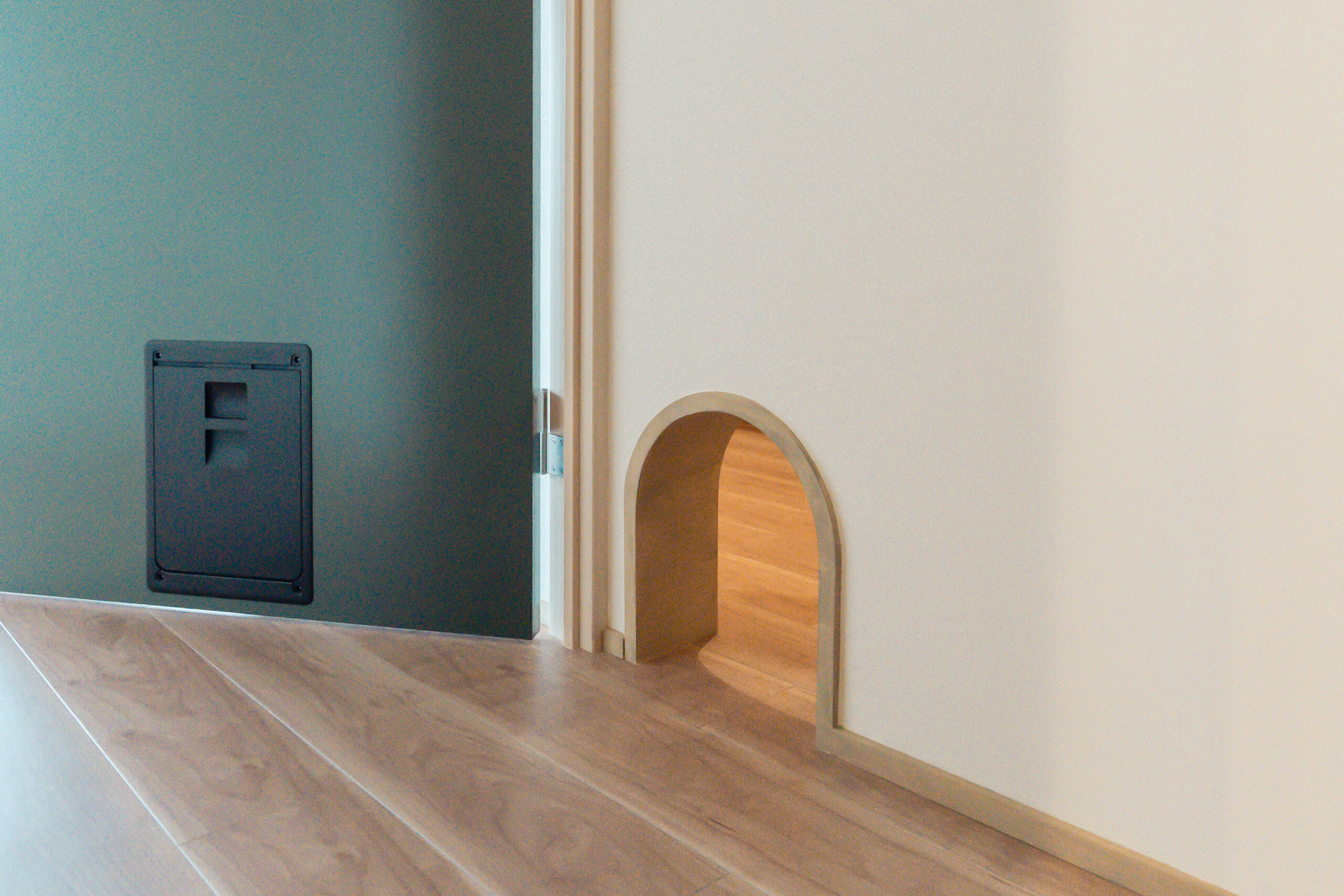 在宅ワークを快適にするためのワークスペース、豊富なCDコレクションを整理できる本棚、愛猫との暮らしを楽しくさせる通り道を新たに設けました。