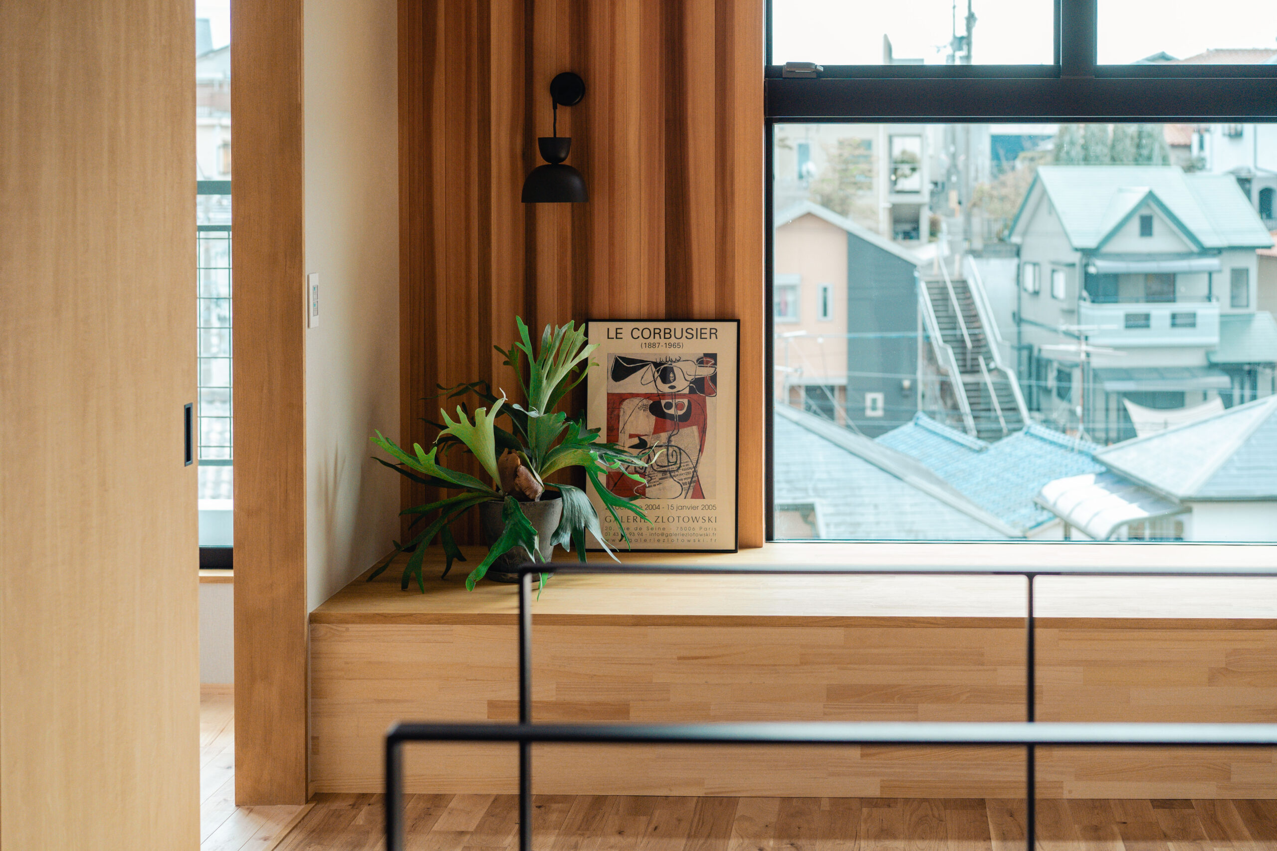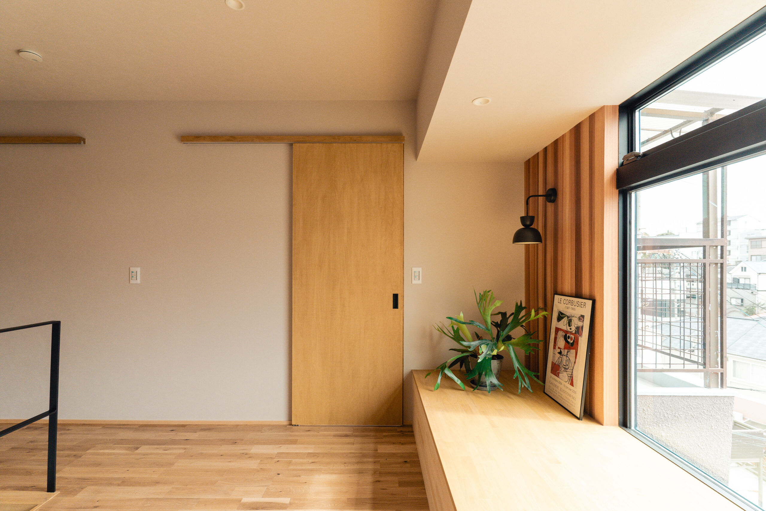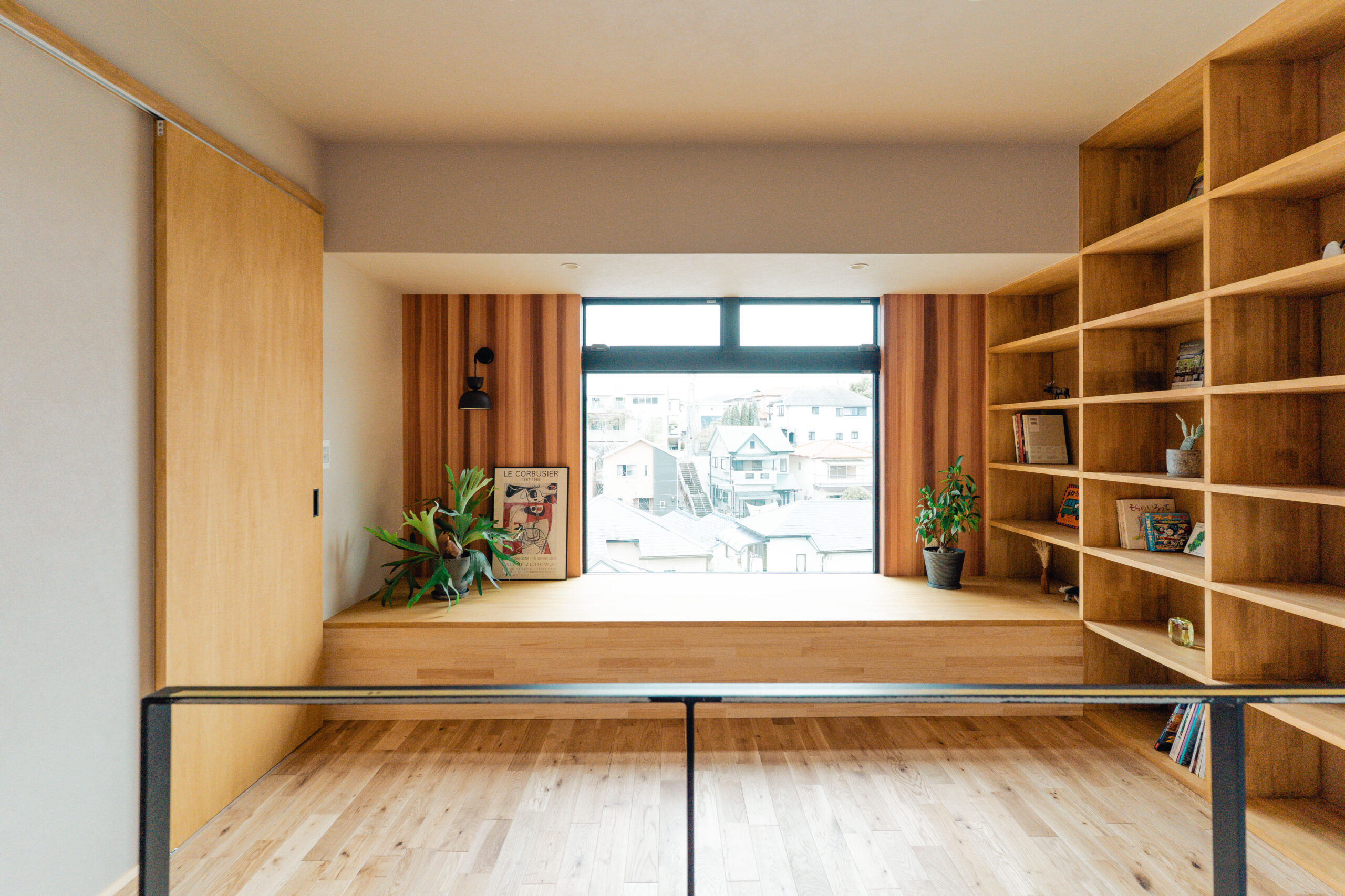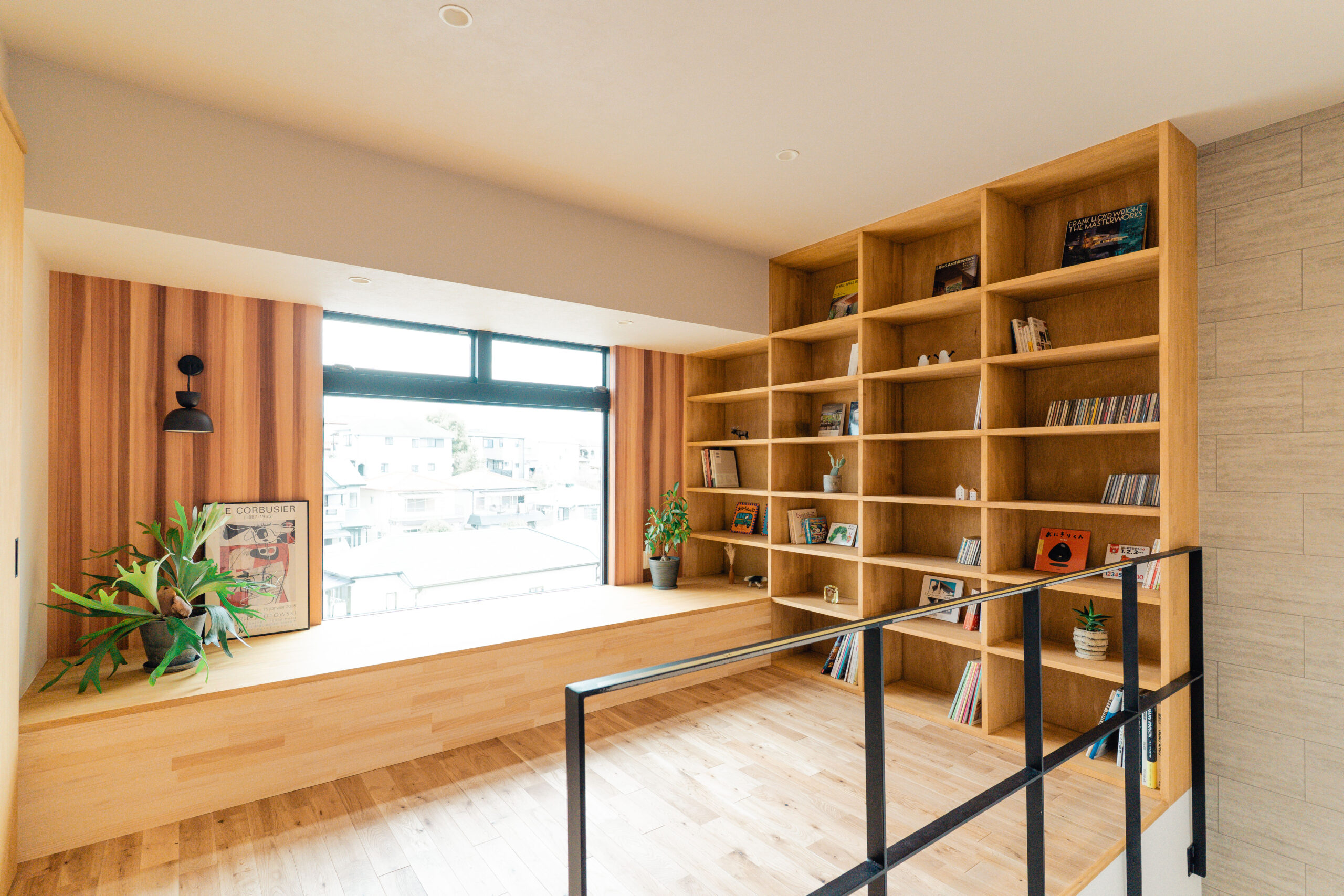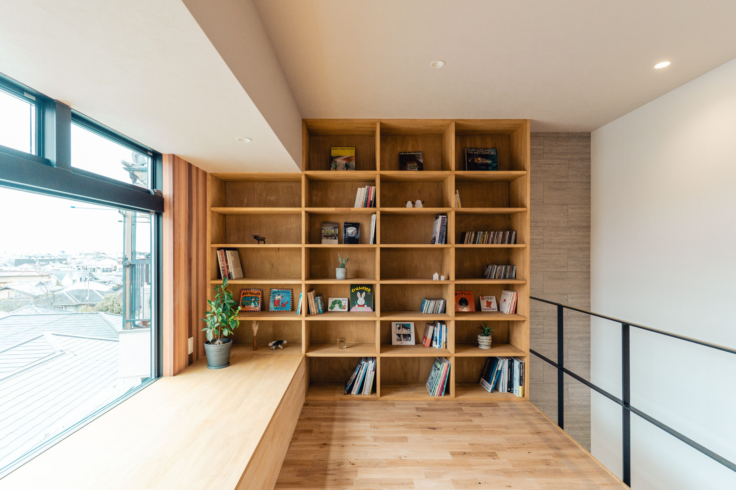 眺望を楽しむ、本棚ヌックのある家