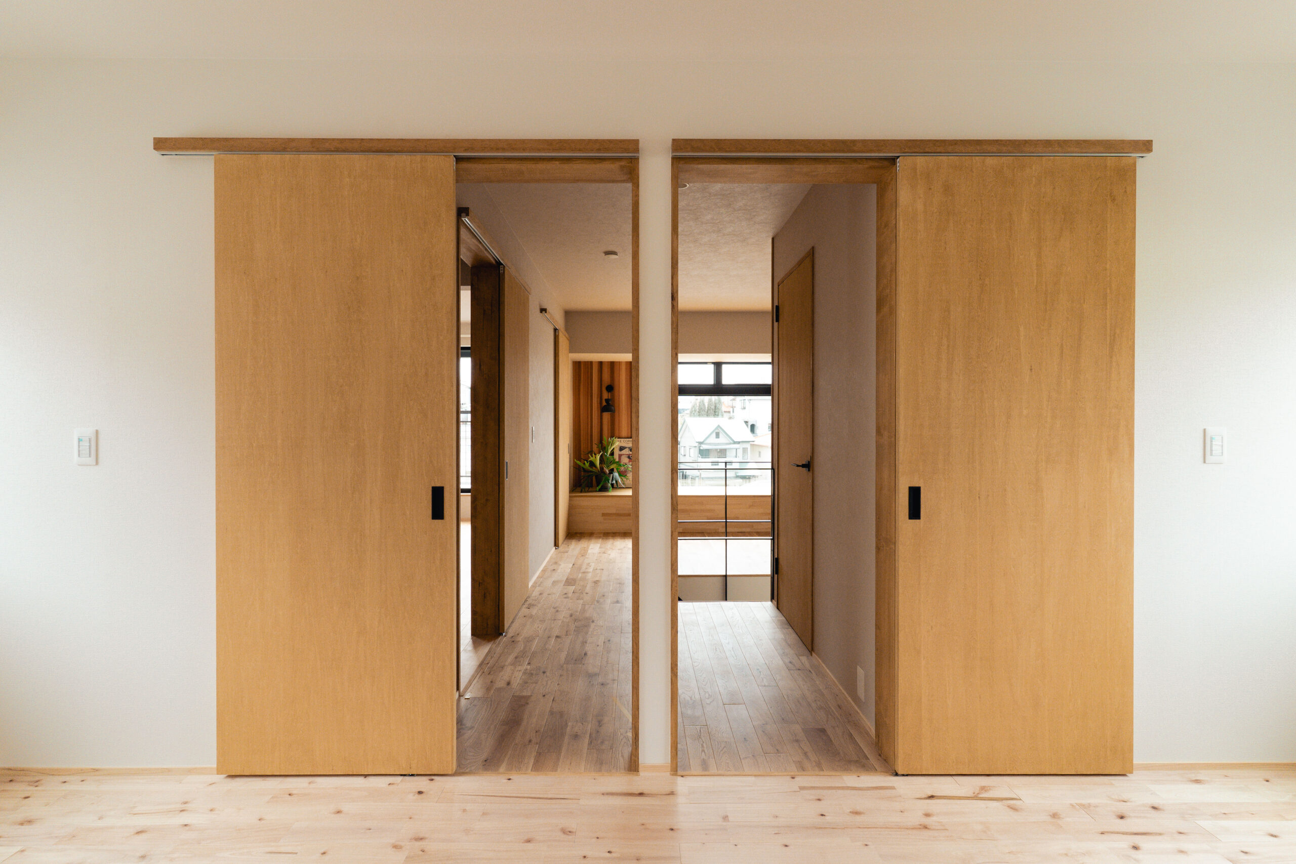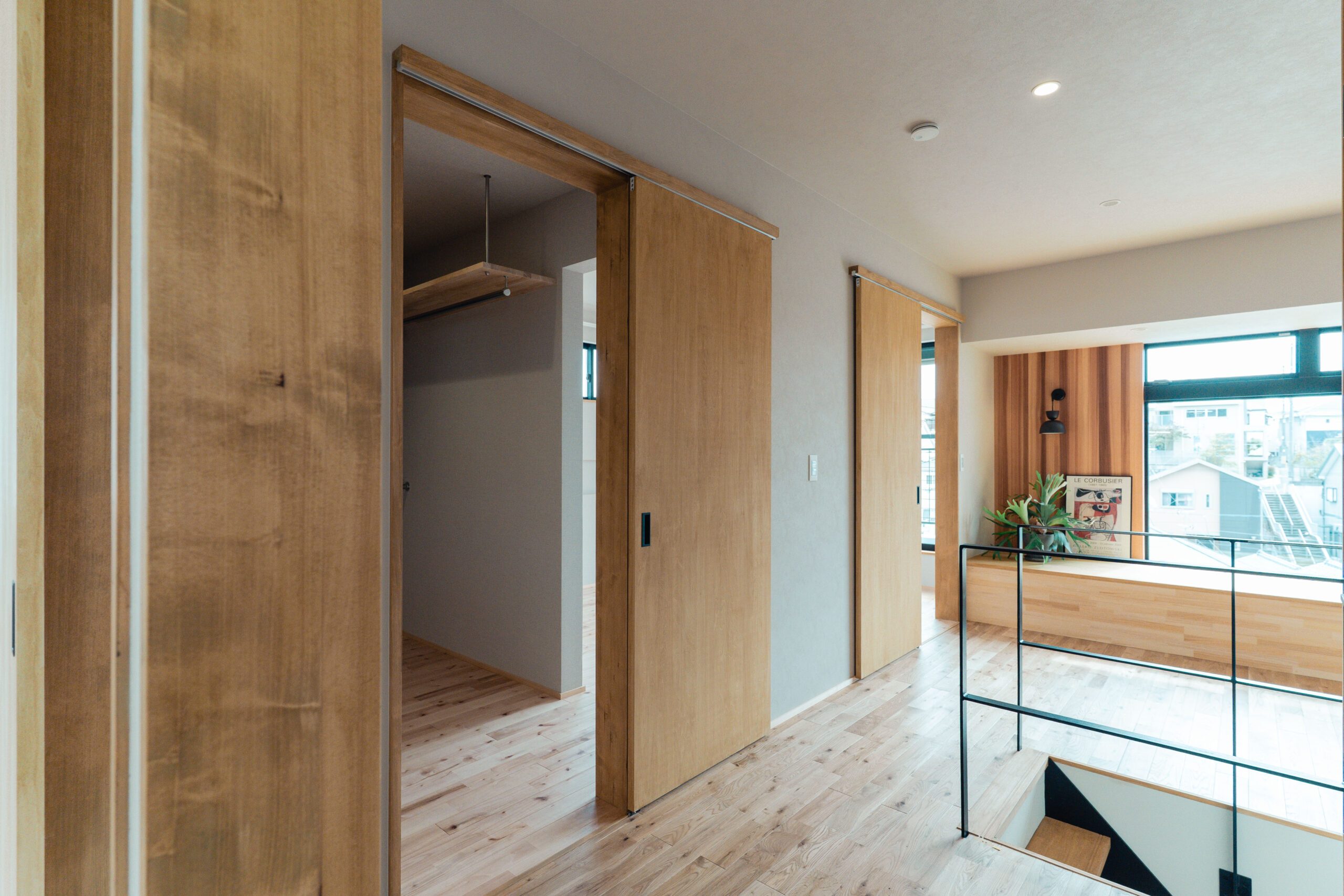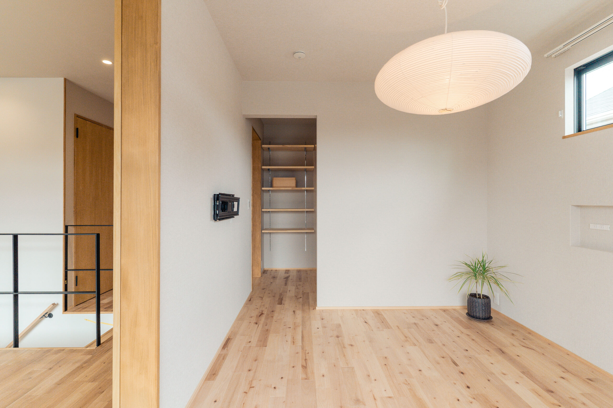 2階の共有フリースペースには造作本棚と、ゆったりとくつろげるヌックを設け、お子様の遊び場や家族の読書スペースとして活用できます。