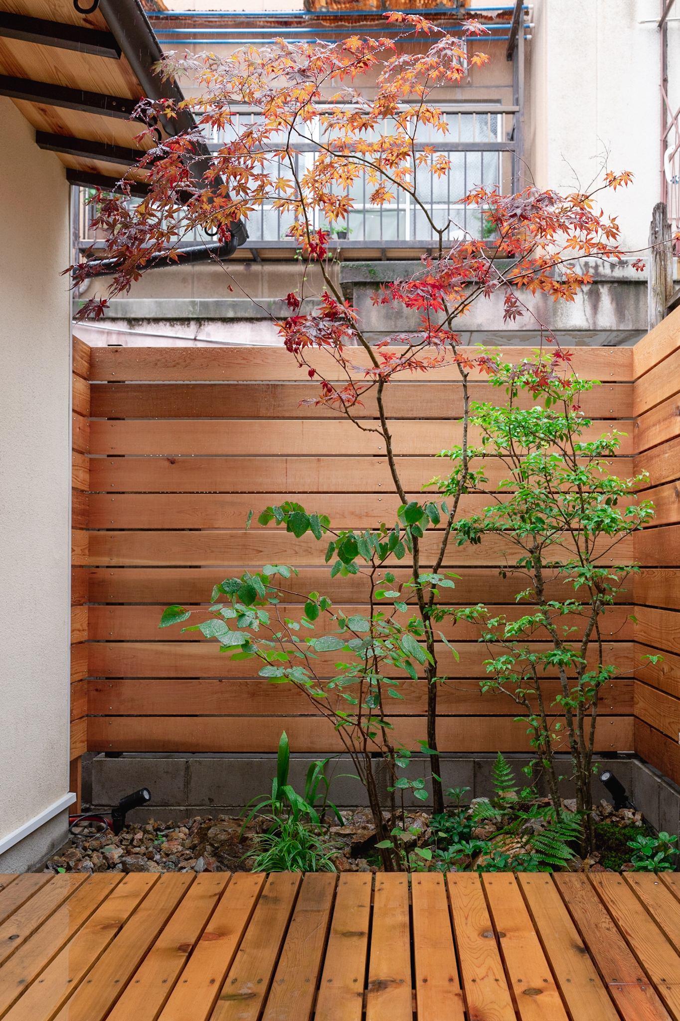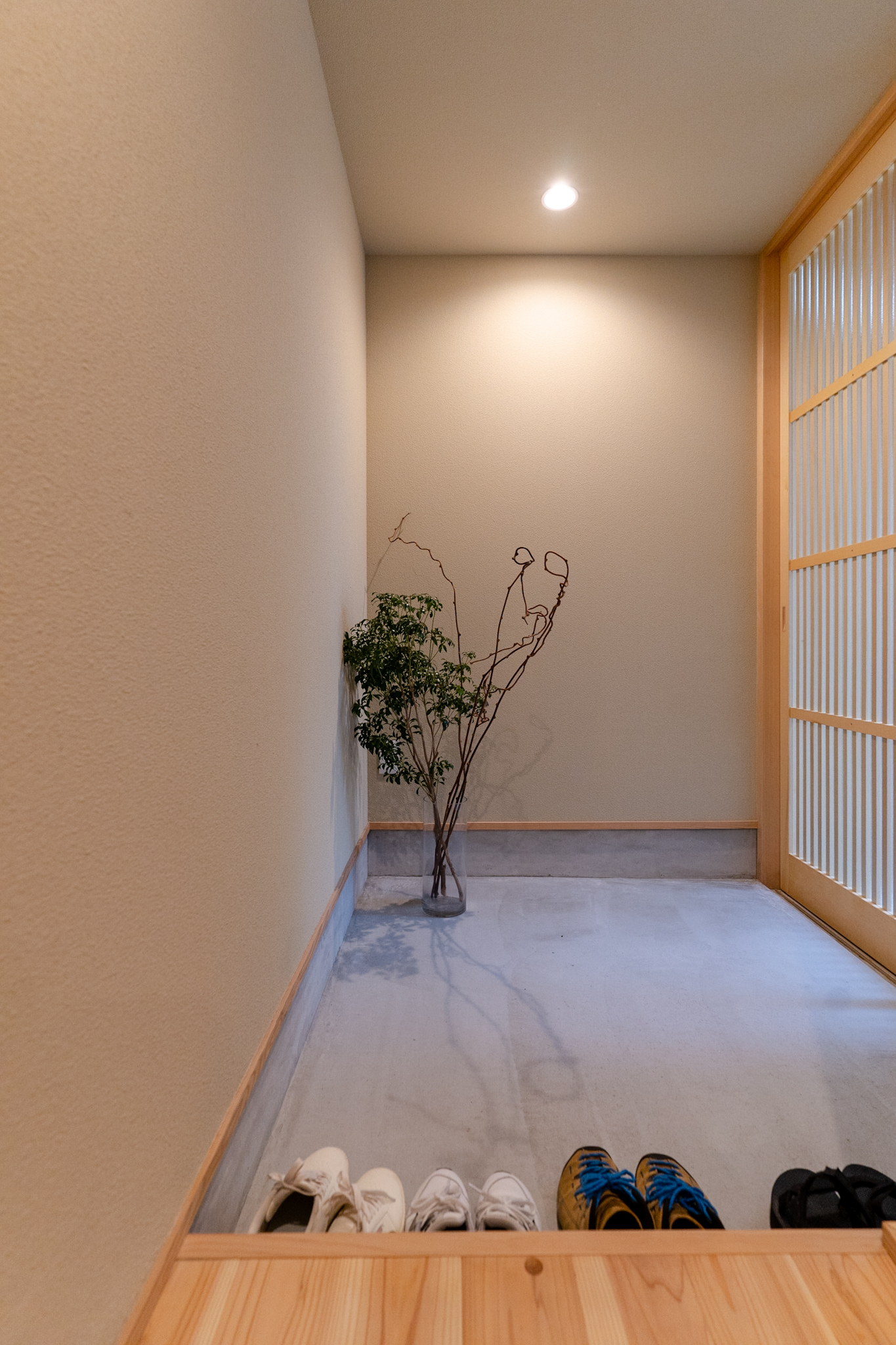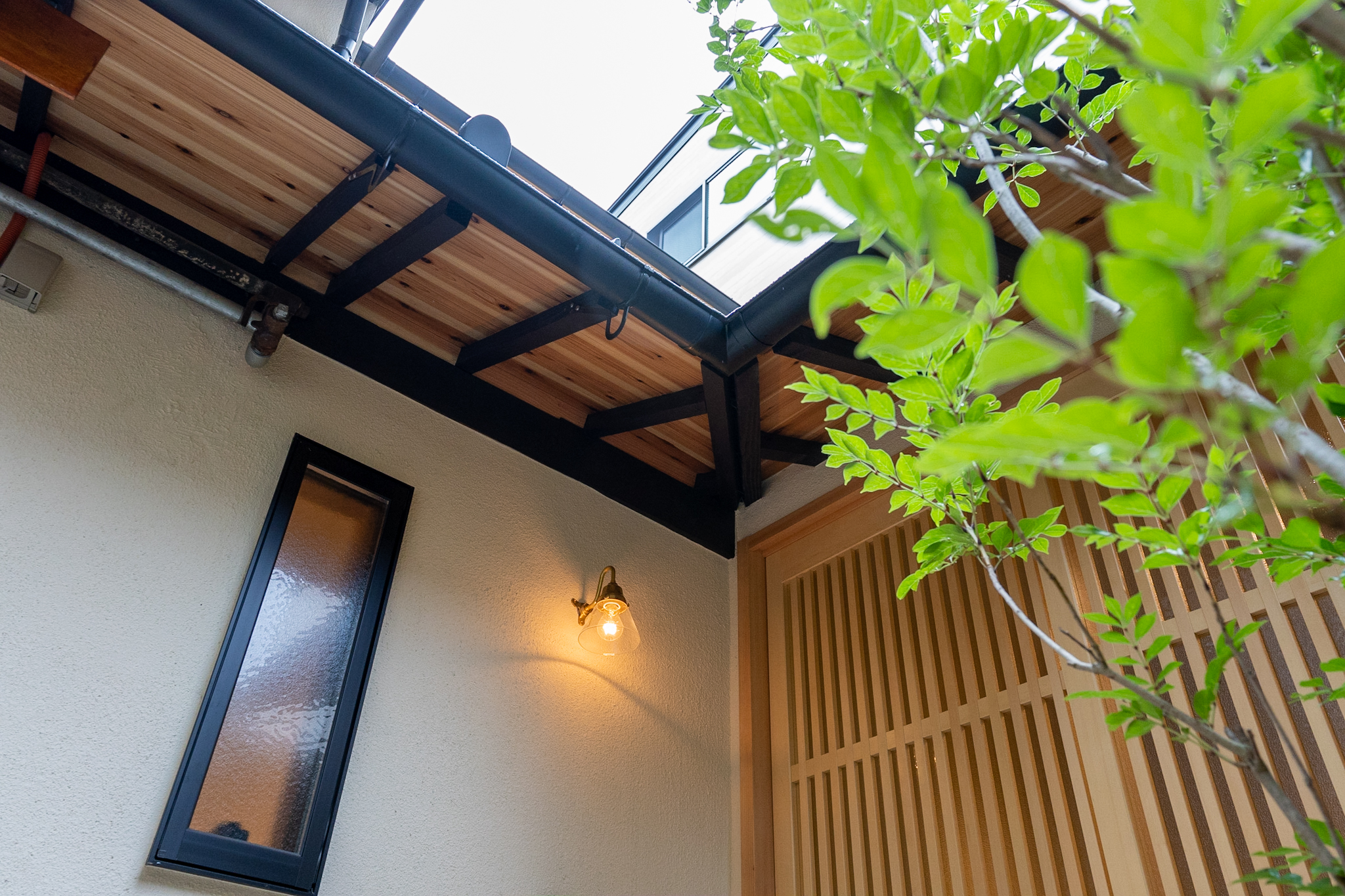 四方が家に囲まれた細い路地を通り抜けると、緑と共にある和風の玄関。