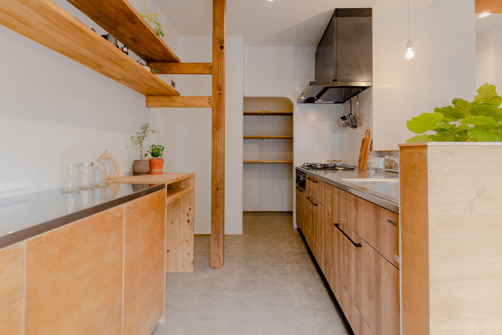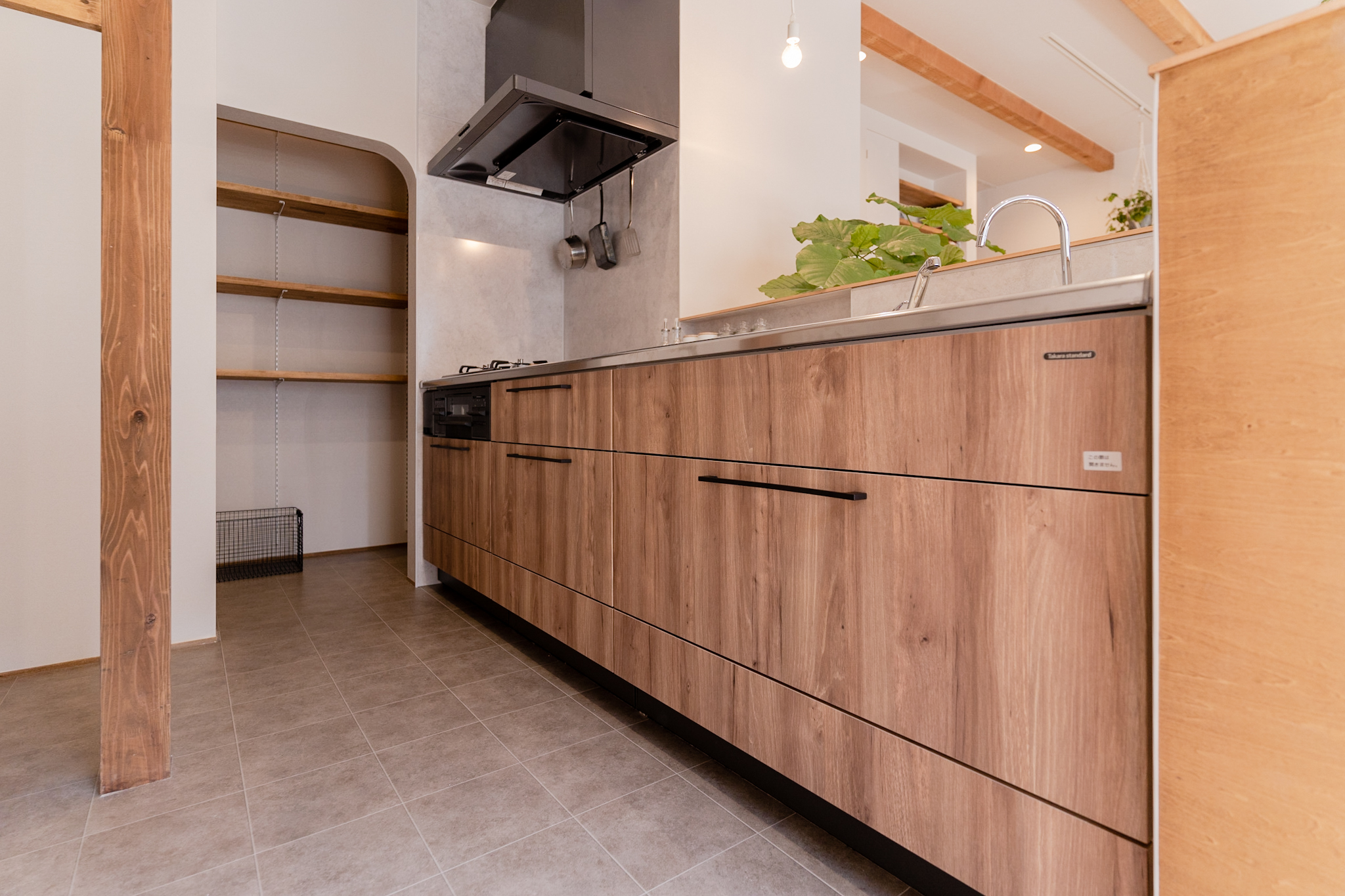 キッチンの奥にはパントリーをつくり、こちらの収納もたっぷりと。