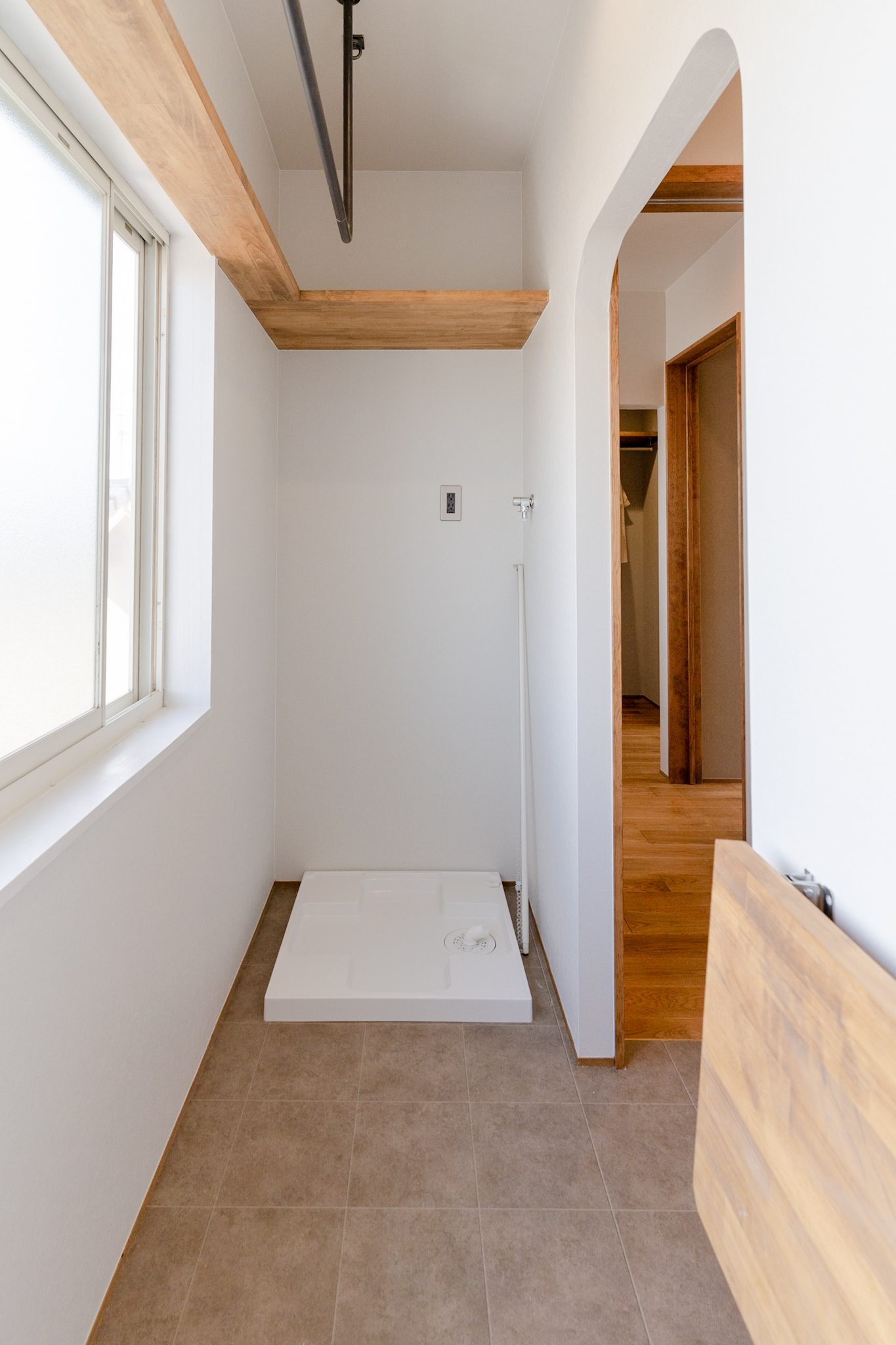 また、もともと1Fにあったお風呂は3Fへ移動し、洗面、お風呂の水回りをひとまとめに。風通しが良い洗濯干しスペースを設け、クローゼット、寝室へとつながる便利な動線としました。